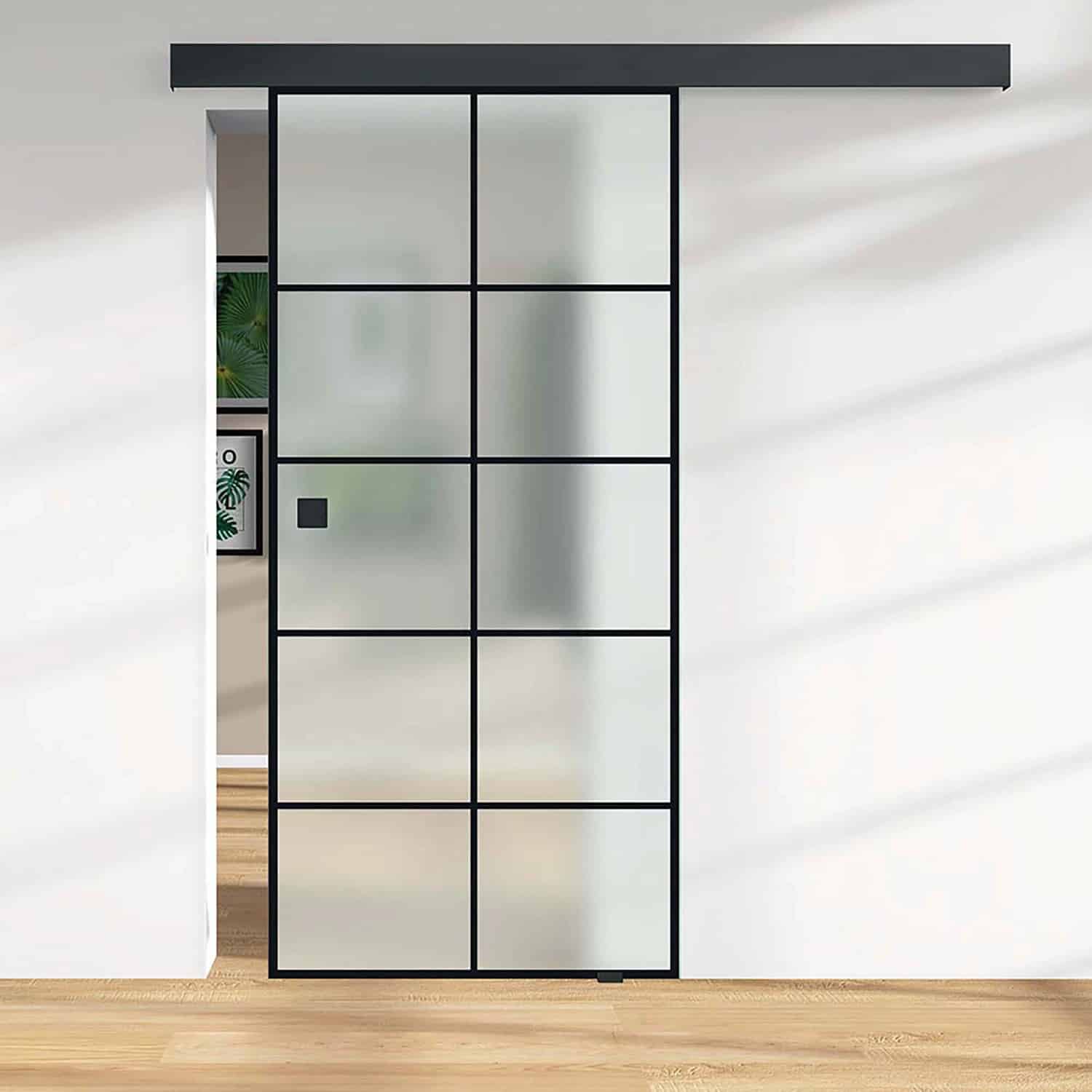 Eleganz in Schwarz: Die Glasschiebetür ESG Floatglas satiniert Siebdruck 76/29 Black