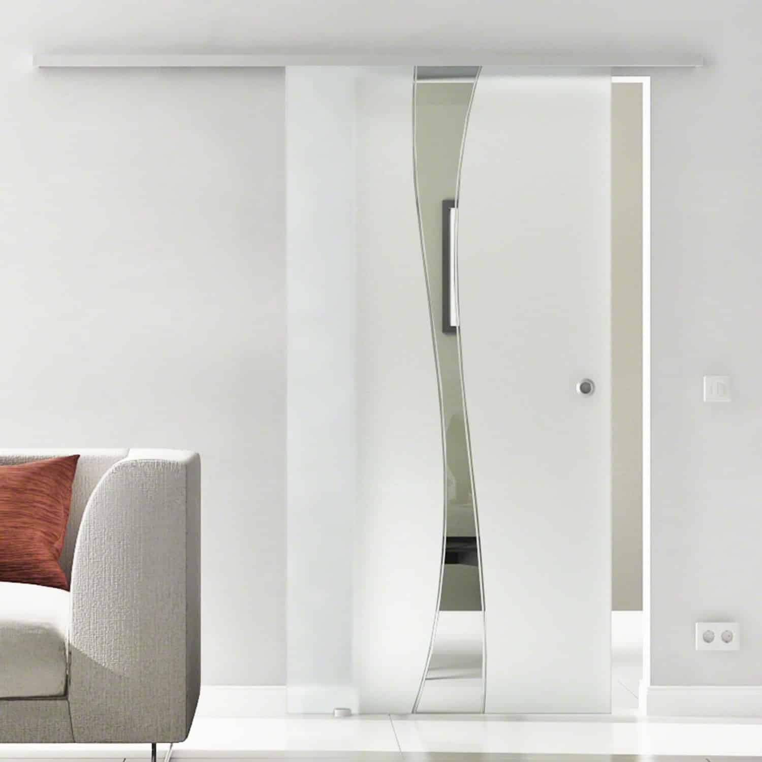 - Lieferumfang: Glasschiebetür, Laufschiene, Griffmuschel, Montagematerial